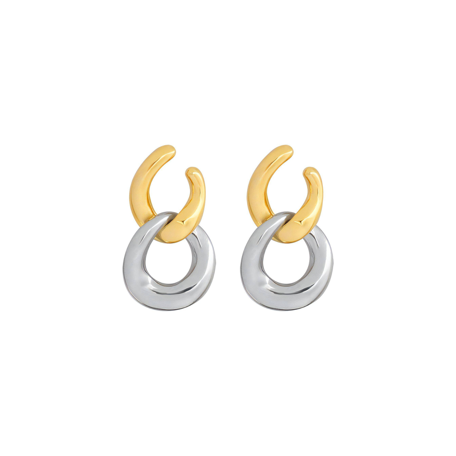 These interchangeable mixed-metal chain link earrings give you two looks in one. Wear the gold and silver links together for a bold statement, or remove the silver link and style the gold hoops on their own for an everyday classic.