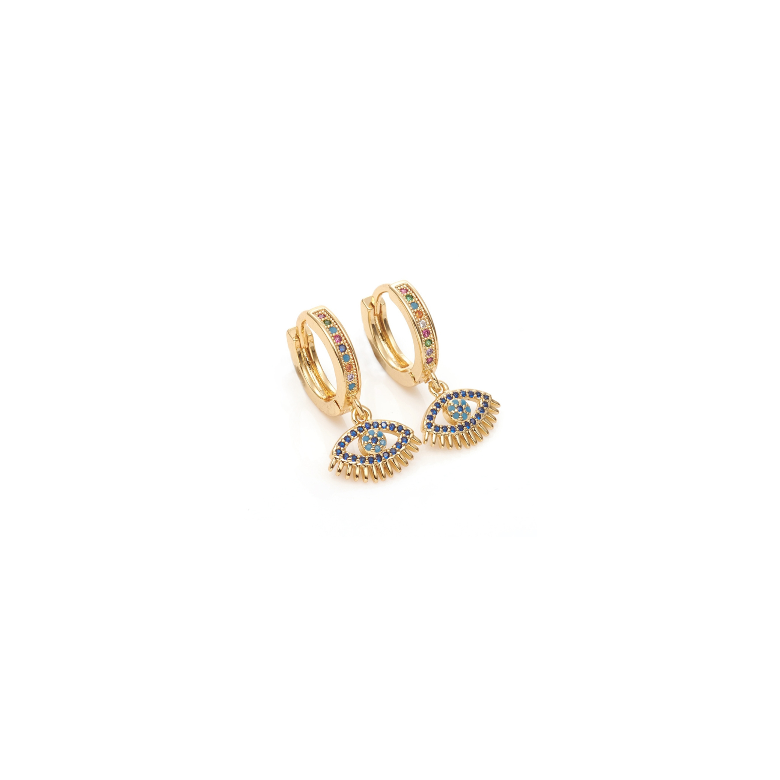 A Skye and Rocket collection celebrating protection, intuition, and celestial energy. Each gold huggie hoop is set with colourful pavé stones and a symbolic charm, designed to bring meaning as well as sparkle to your everyday style.
